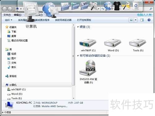 3、 鼠标悬停时图标会放大,点击即可打开对应文件夹。默认包含计算机、网络、我的文档、音乐、图片以及所有控制面板项目等内容。