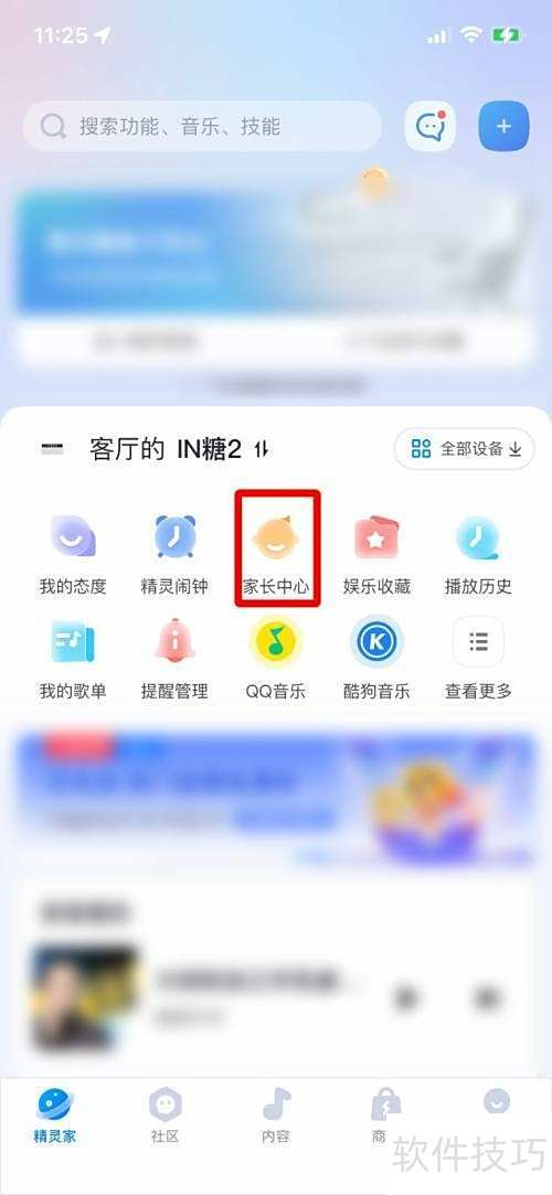 2、 打开天猫精灵,进入家长中心页面即可。