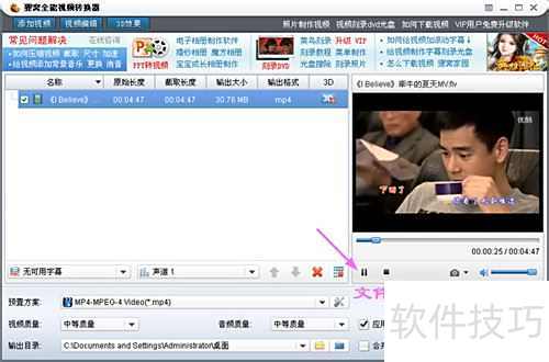 2、 该软件功能多样,导入视频后,可通过右侧播放器直接预览已添加的rm文件,实现转换与播放同步进行,极大提升了使用效率和操作便捷性。