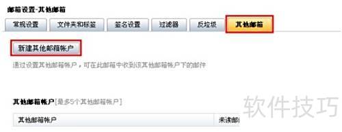 3、 进入邮箱设置后,点击其他邮箱并选择新建其他邮箱账户进行添加。