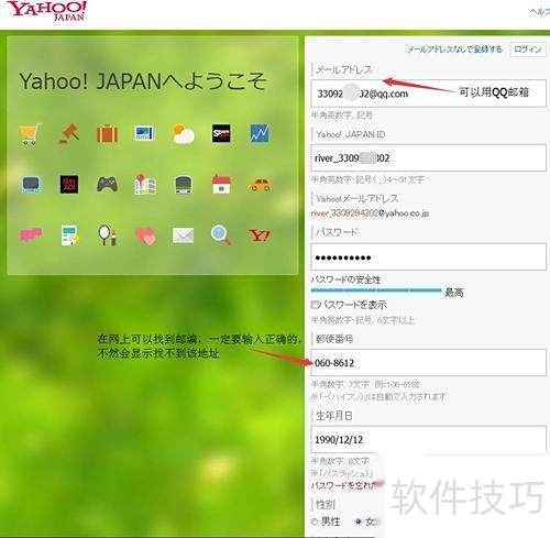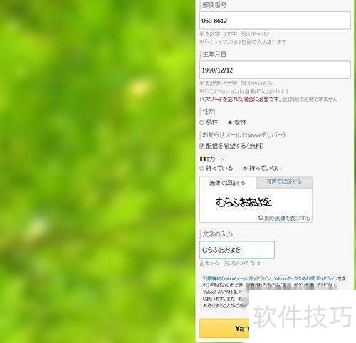 2、 在弹出的注册页面中填写邮箱(如QQ邮箱)、ID(系统会提示是否已被占用)、密码及邮编等信息,确认无误后输入页面底部的日语验证码,最后点击注册按钮完成操作。