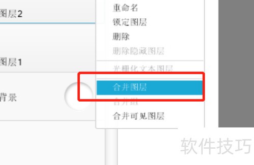 5、 打开后,在菜单栏中选取合并图层选项,所选图层便会自动合并为一个整体。