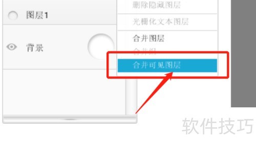 6、 在菜单中选择合并可见图层,可将当前所有显示的图层进行合并操作。