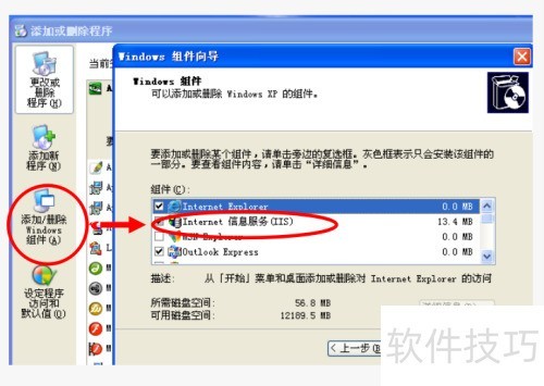 3、 在弹出的复选框中勾选安装Internet信息服务(IIS),该组件大约需要19MB的磁盘空间。