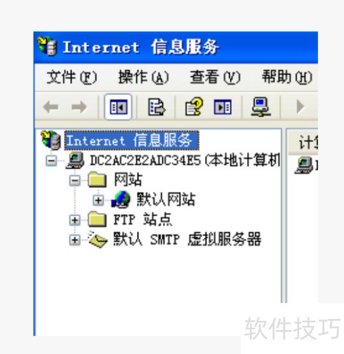 6、 打开IIS服务器配置界面,可通过点击开始菜单,依次进入程序→管理工具→Internet信息服务管理器;也可通过控制面板中的管理工具找到并打开Internet信息服务管理器。启动后将显示相应操作窗口,具体界面所示。