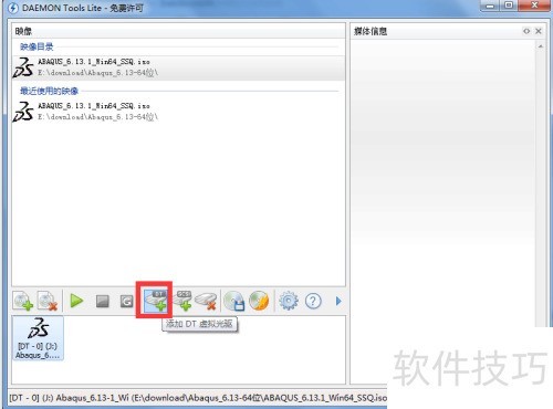 1、 启动DAEMON Tools Lite后,仅显示一个虚拟光驱,虽可加载映像文件,但限制同时仅能添加一个。