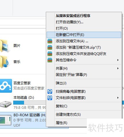 8、 将鼠标移至磁盘,右击选择在新窗口中打开。