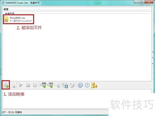 2、 点击左侧添加映像按钮,选择需添加的.iso文件路径,确认后该文件将显示在映像目录列表中,表示已成功添加。