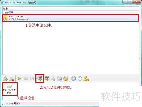 3、 选择已添加的.iso文件,点击添加DT虚拟光驱,下方即可显示新增的虚拟设备。
