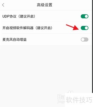6、 进入高级设置,查找视频软件解码器选项,点击右侧按钮启用该功能。