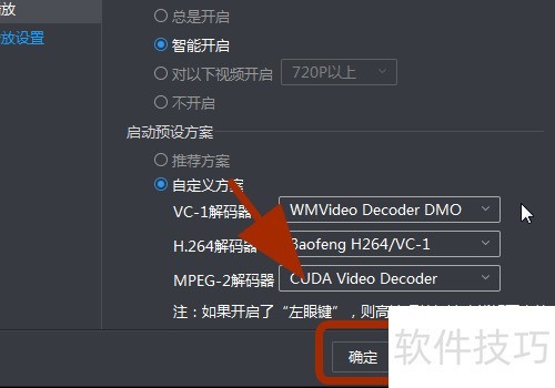 5、 进入自定义方案,点击解码器选项,选择自定义解码器即可完成设置。