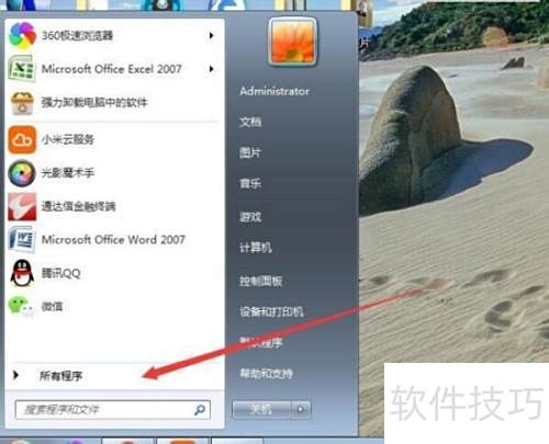 2、 在开始菜单里点击所有程序即可。