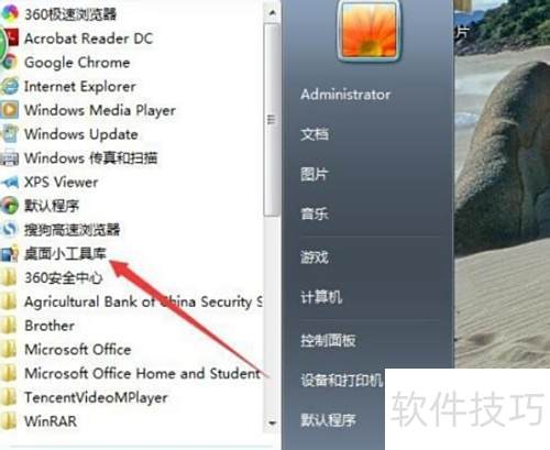 3、 找到并点击桌面小工具库选项即可开启。