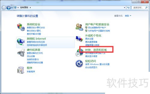 3、 在控制面板窗口中,继续点击时钟、语言和区域选项。