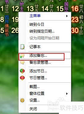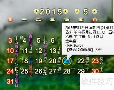 7、 保存后,桌面日历中该日期颜色会变化,鼠标悬停时即可查看所记录的备忘内容。