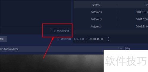 7、 若需将已剪辑的音频片段合并,该软件同样支持此功能,只需点击界面上的合并选中文件按钮,即可便捷完成多个音频的整合操作。