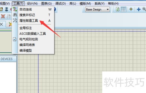 2、 弹出下拉菜单,选择属性赋值工具选项。