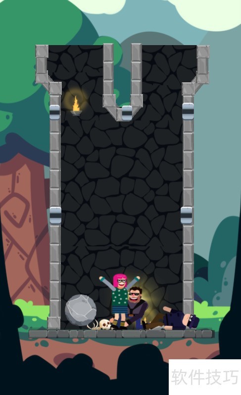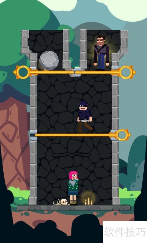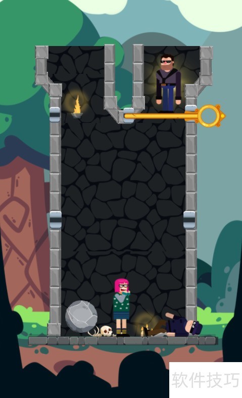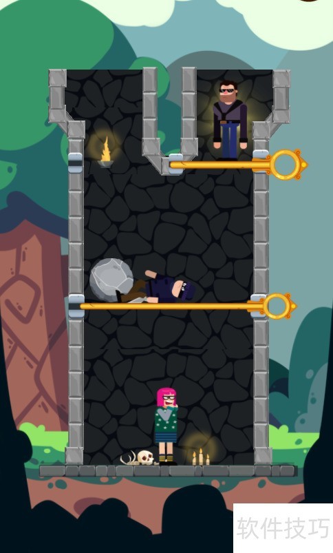 1、 本关需解开三个插销,救出被困在底部的红发女子,具体情形见图示。