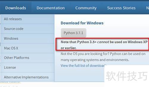 3、 Python官方已明确指出,自Python 3.5版本起不再支持Windows XP及更早的操作系统。
