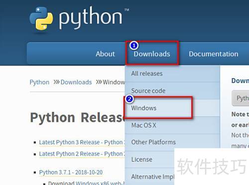 4、 进入Python官网,依次点击下载选项中的Windows版本进行获取。