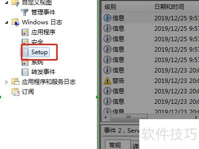 4、 展开多个选项后,选择Windows日志,即可查看其中的Setup项。