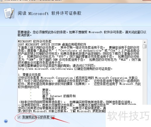 4、 第四步,在我接受此协议的条款前勾选,点击继续,操作所示。