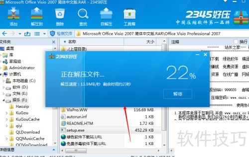 2、 第二步,点击setup.exe后,系统将开始解压文件,具体界面所示。