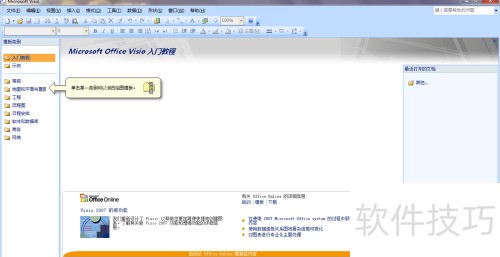 1、 首先下载并安装Microsoft Visio 2007绘图软件,安装完成后启动该程序,界面将中所示呈现。