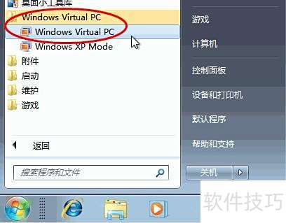23、 开始菜单中会出现Windows Virtual PC的快捷方式,表明安装成功。