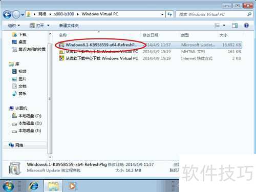 4、 双击已下载的Windows Virtual PC安装程序文件以开始安装。