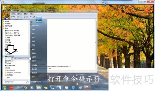 6、 开始菜单中依次选择所有程序、附件,打开命令提示符。