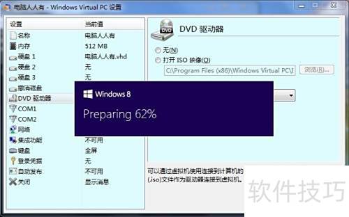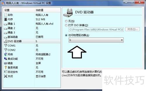 10、 刷新Windows Virtual PC界面,此时访问物理驱动器选项由灰色变为黑色,表示已激活可用;随后放入Windows操作系统安装光盘,点击确定继续操作。