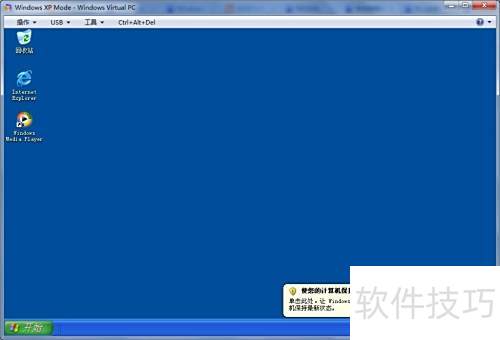 2、 点击启动后,界面与Windows XP操作系统完全相同。尽管实际运行环境为Windows 7,但通过其内置的虚拟化技术,可模拟出完整的Windows XP系统环境,从而兼容并运行原本仅支持XP系统的各类程序与游戏,实现良好的向后兼容性,提升旧软件在新系统上的可用性。