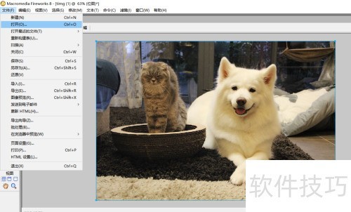 1、 启动Macromedia Fireworks,选择导入功能,将本地图片载入编辑界面。