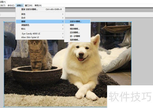 3、 进入滤镜菜单,选取模糊中的放射状模糊功能