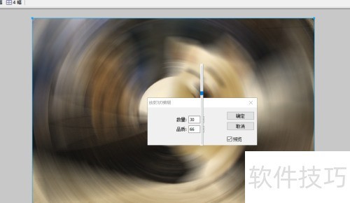 4、 勾选预览后,调节放射性模糊的数量与品质参数。