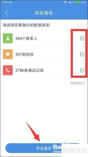 2、 在备份恢复界面中,可对荣耀Magic手机的数据进行备份。进入安全备份页面后,选择需备份的内容,如联系人、短信及通话记录,勾选完毕后点击安全备份按钮,系统将自动完成数据备份,操作简便快捷,有效保障重要信息的安全存储与后续恢复使用。