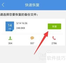 4、 在快速恢复界面中,找到已备份的文件,点击右侧恢复按钮,即可完成荣耀Magic数据的恢复。