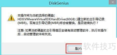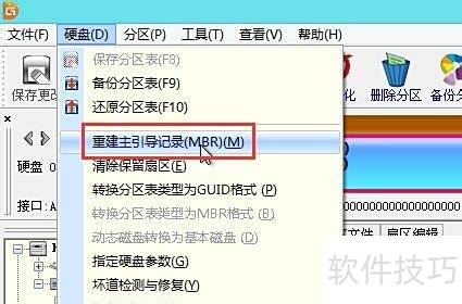 3、 在Diskgenius中选择对应硬盘,点击重建主引导记录即可完成操作。