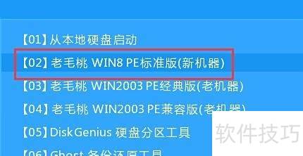 1、 进入PE系统,选择老毛桃WIN8 PE标准版(适用于新设备)