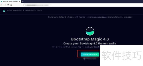 2、 访问bootstrap magic主页,点击创建你的主题按钮,即可进入界面样式设计页面。