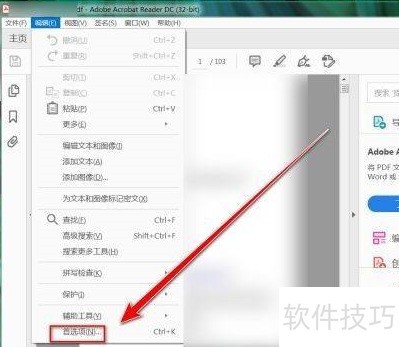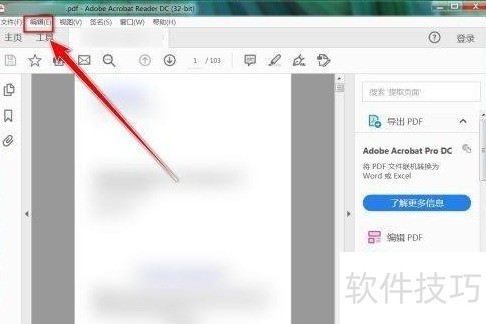 1、 启动Adobe Acrobat Reader DC,选择菜单栏里的编辑选项即可。