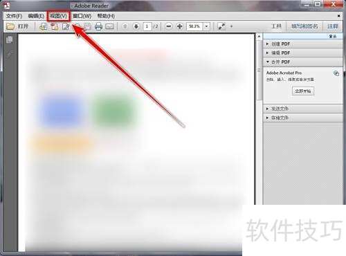 1、 在Adobe Reader界面中,选择顶部菜单栏的视窗选项,操作所示。