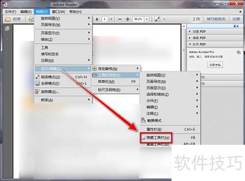 如何在Adobe Reader中隐藏工具栏?方法如下。