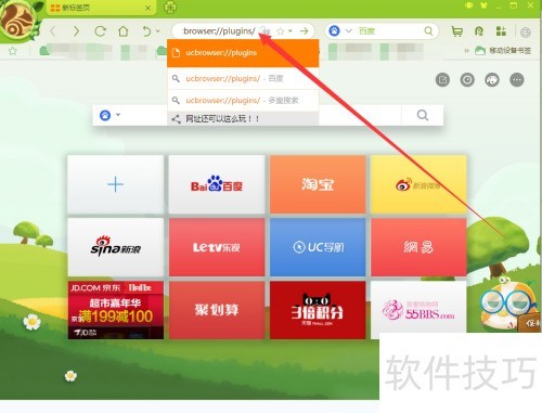 4、 在地址栏输入 ucbrowser://plugins/,按下回车键即可,操作所示。
