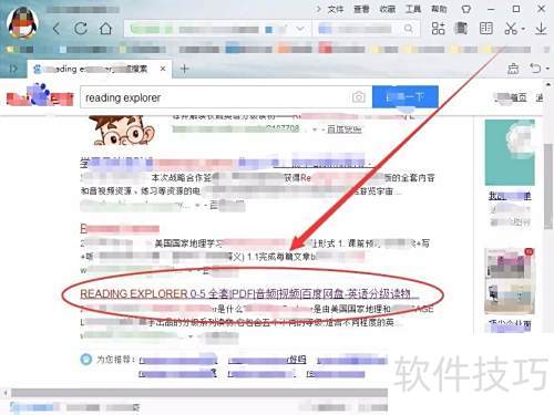 3、 在搜索区域查找READING EXPLORER 0-5全套英语分级读物的链接,点击进入即可。