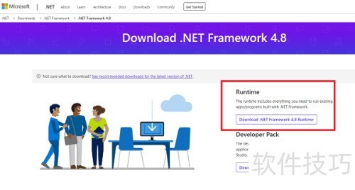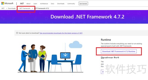 2、 进入第二步后,点击右侧下载 .NET Framework 4.7.2 运行时链接开始下载,具体操作所示。