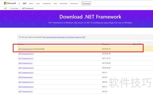 3、 第三步可点击页面顶部的.NET Framework,进入后下载最新版本的.NET Framework安装包,具体操作所示。