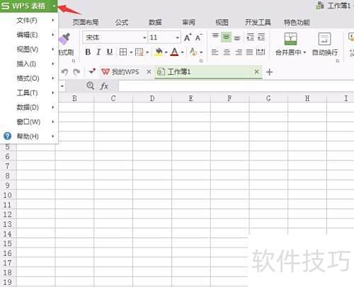 2、 点击WPS表格左上角倒三角按钮,展开下拉菜单。