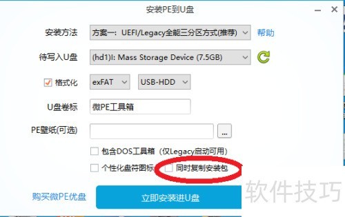 5、 保持默认选项,直接点击立即安装到U盘即可。